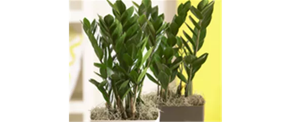 Die Zamia (Zamioculcas) ist durch ihre starken vertikalen Linien der aufstrebenden, gefiederten Blätter eine auffällige Pflanze, um Grün ins Zuhause zu bringen. Dass es sich auch noch um eine äußerst unkomplizierte Wohnpflanze handelt, macht sie daher besonders attraktiv.